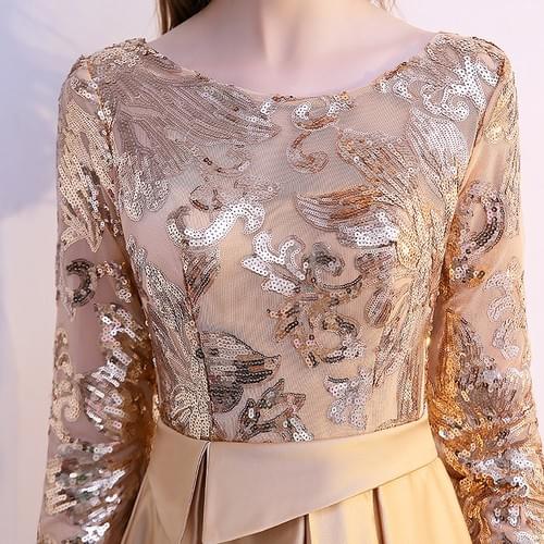 Merveilleusement romantique, cette robe de soirée en satin vous fera briller lors de vos soirées. Sa coupe fluide et ses manches 3/4 ajoutent une touche raffinée, son bustier en organza est orné de fleurs et de broderies élégantes en sequins.